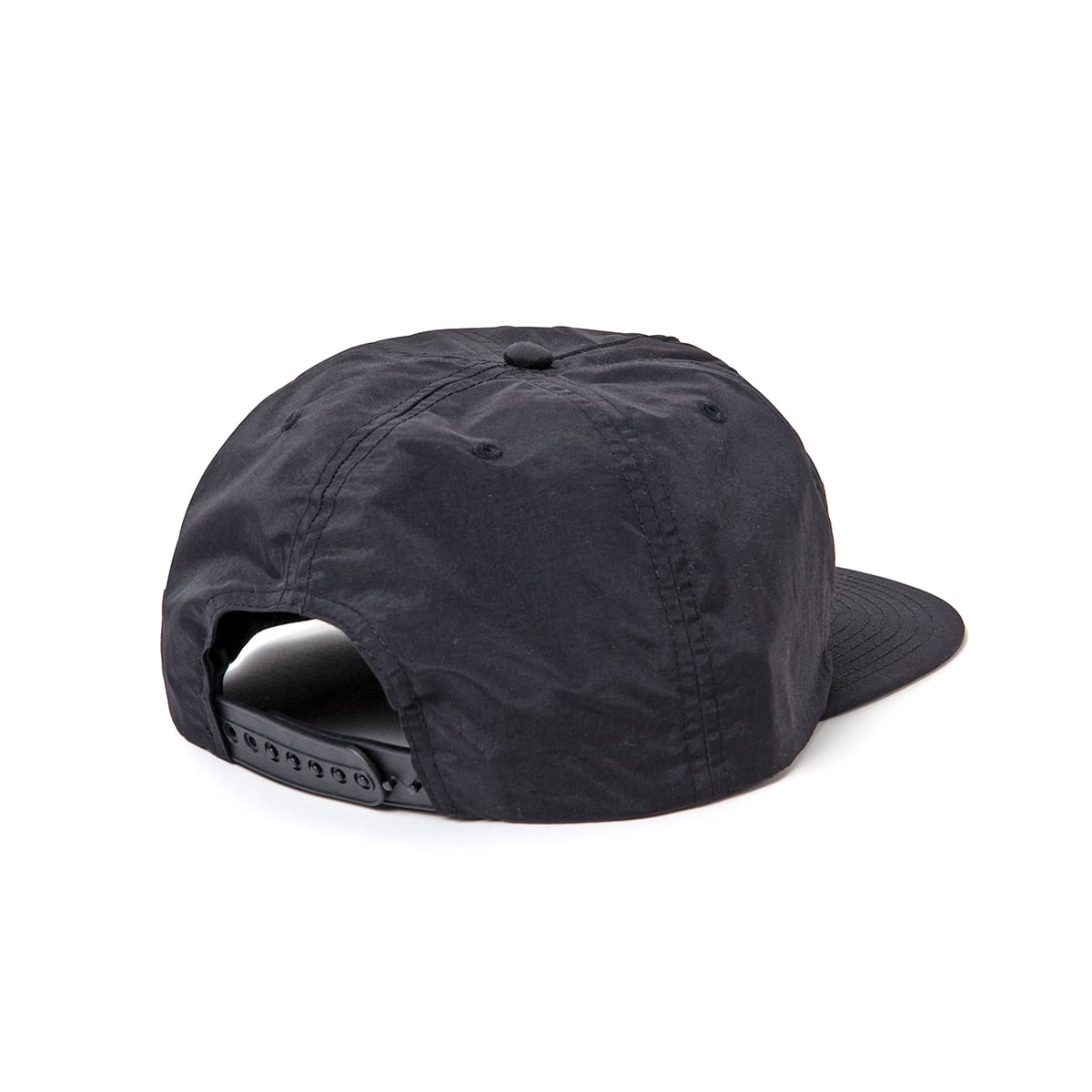 ナイロン素材、サイズ調整可能なスナップバック仕様。